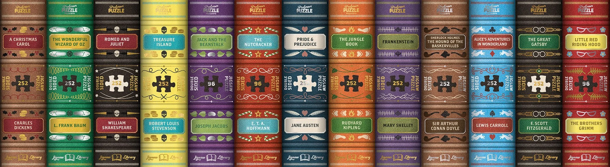 The Jigsaw Library has been one of my longest running and most enjoyable projects. I have been able to work on this range from start to finish, designing the branding, packaging and the illustrations. When I started working on these in 2019 I had done very little commercial illustration and was still finding feet as an illustrator. As I’ve worked on these my confidence and technique has improved, thanks a lot to the team at Professor Puzzle who have been wonderful to work with especially with art direction on this range.